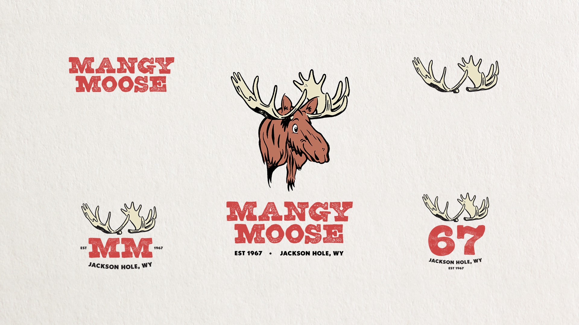 One of my most coveted branding projects is the redesign for the world-famous Mangy Moose Restaurant & Bar. Located at the base of Jackson Hole Mountain Resort, the local saloon needed a branding facelift to match its lovable après-ski vibe. Through many hand-drawn iterations, we settled on one charismatic moose with a wide range of uses that have been utilized from menus and coasters to t-shirts and snow globes. Cheers!